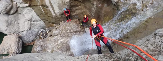 Unsere staatlich geprüften Canyoningguides verfügen über eine umfangreiche Ausbildung. Somit ist auch bei dieser Aktion immer für Ihre Sicherheit bestens gesorgt!